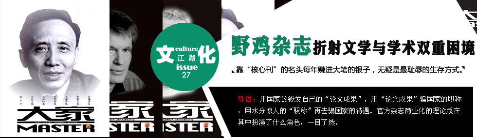 《中國(guó)青年報(bào)》一則報(bào)道《云南一官方文學(xué)雜志出“野雞刊”斂財(cái)》在網(wǎng)上引發(fā)熱議。該報(bào)道稱,《大家》雜志在原有純文學(xué)版外另出“理論版”,用高價(jià)刊登論文形式一月斂財(cái)百萬,兩種《大家》共用一個(gè)刊號(hào)。