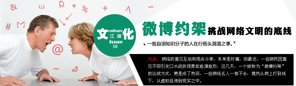 因政治觀點分歧而“約架”,這是中國少數(shù)網(wǎng)絡(luò)知識分子最粗鄙的表現(xiàn)之一,也是微博推動中國民主進程泥沙俱下帶來的一塊臟東西。無論“約架”或“應(yīng)架”,都與“勇敢”不相干,也與“風(fēng)度”或“敢作敢當”風(fēng)馬牛不相及。