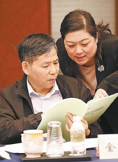 最高檢辦公廳工作人員向金葆康代表(左)介紹情況