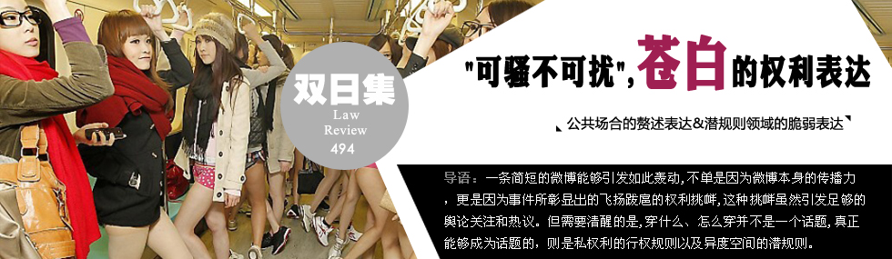 的確,如何穿衣是一個(gè)人的自由,屬于私權(quán)范圍,國(guó)家和社會(huì)都無(wú)權(quán)去評(píng)價(jià)。但若進(jìn)入公共生活領(lǐng)域,張揚(yáng)的私權(quán)要受到公共利益的制約,這是社會(huì)實(shí)踐的必然選擇。