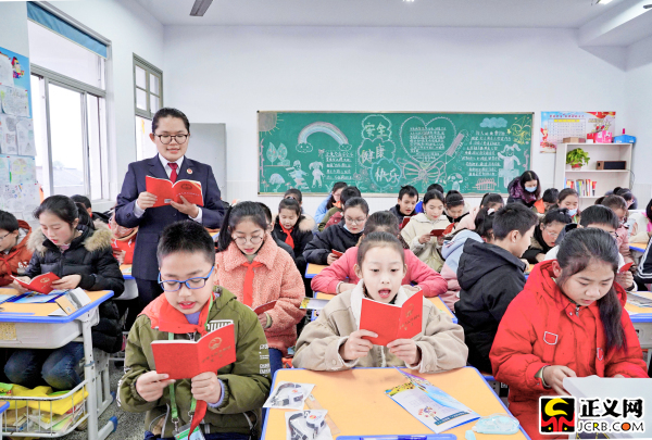 正義網(wǎng)常州11月30日電(通訊員孫忠玲)為迎接第七個(gè)國家憲法日和第三個(gè)憲法宣傳周,11月27日,江蘇省常州市金壇區(qū)人民檢察院干警來到岸頭小學(xué)開展憲法宣傳活動(dòng);顒(dòng)中,檢察官深入淺出地講解憲法的有關(guān)知識(shí),帶領(lǐng)孩子們齊聲誦讀憲法中保護(hù)未成年人的部分內(nèi)容,還為孩子們上了一堂預(yù)防性侵的法治教育課。