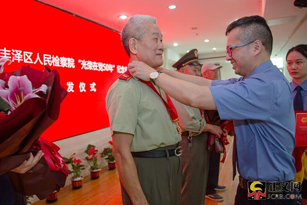 正義網(wǎng)泉州7月7日電(通訊員 王榮燦)近日,福建省泉州市豐澤區(qū)人民檢察院“憶初心 頌黨恩 擔(dān)使命”主題黨日活動,該院林志銘檢察長向黨齡超過50年的老黨員頒發(fā)“光榮在黨50年”紀(jì)念章,并組織開展慶祝建黨100周年系列活動,進一步增強使命感、歸屬感、榮譽感,引領(lǐng)廣大黨員干警守初心、擔(dān)使命,再創(chuàng)檢察輝煌。