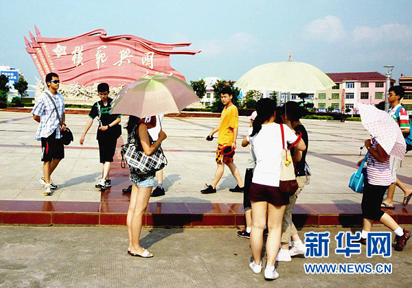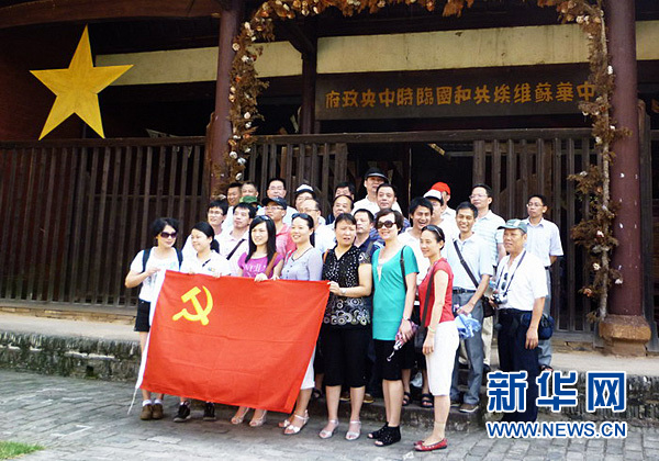 今年是中國(guó)共產(chǎn)黨建黨90周年,紅色旅游人數(shù)遠(yuǎn)遠(yuǎn)超過(guò)去年同期。這是游客在瑞金中華蘇維埃臨時(shí)中央政府舊址前合影。新華網(wǎng)發(fā)(徐春來(lái) 攝)