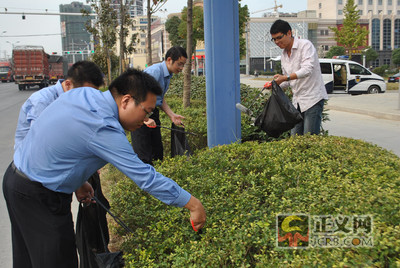 該院“學(xué)雷鋒志愿者服務(wù)隊”正在開展垃圾清掃。 王彬攝