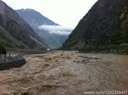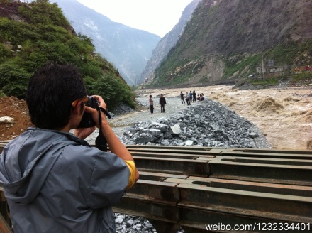 記者在現場看到,滾滾的泥石流侵占了半邊河道,導致岷江取彎道直接沖擊路基,現在己有大型施工車到場,都汶公司馮總表示,現在水太猛,投放四面體會被沖走,計劃炸開一旁山坡開辟臨時便道,目前最終方案還未定。