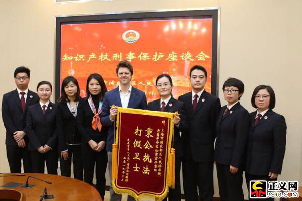 正義網(wǎng)上海4月8日電(通訊員施晨霞)“作為一家科技型企業(yè),在案件的辦理過(guò)程中感受到中國(guó)政府在保護(hù)知識(shí)產(chǎn)權(quán)的堅(jiān)定決心!比涨,英國(guó)戴森公司全球知識(shí)產(chǎn)權(quán)總監(jiān)西蒙·福瑞特斯等一行代表戴森公司專程來(lái)到上海市浦東新區(qū)檢察院,感謝該院依法保護(hù)戴森公司的知識(shí)產(chǎn)權(quán),并為承辦假冒“Dyson”注冊(cè)商標(biāo)系列案的吳菊萍檢察官辦案組送上“秉公執(zhí)法 打假衛(wèi)士”的錦旗。