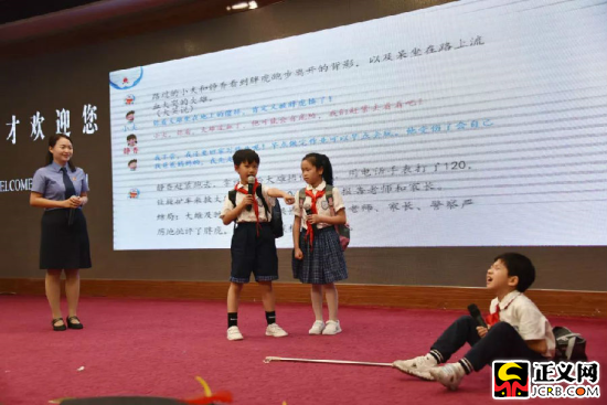 檢察官通過情景劇表演的形式引導學生們學習自我保護知識。