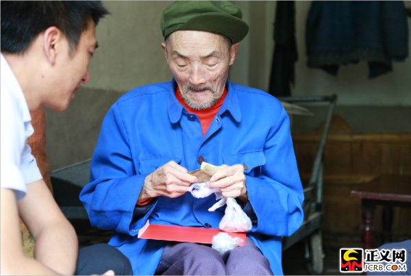 6月27日,陳剛代表中共大竹縣委和檢察院黨組深入到蒲包鄉(xiāng)、姚市鄉(xiāng)、歐家鎮(zhèn)開(kāi)展黨員慰問(wèn)活動(dòng),并為老黨員、困難黨員和優(yōu)秀農(nóng)民工黨員送上節(jié)日祝福和問(wèn)候。在蒲包鄉(xiāng)三星村三組蔡德乾老黨員家中,陳剛詳細(xì)詢問(wèn)了蔡老的生活狀況、家庭條件、身體狀況等問(wèn)題,了解到蔡老是1956年加入中國(guó)共產(chǎn)黨,是三星村第一任支部書(shū)記,1985年冬卸任,雙目失明已經(jīng)很多年,但是從未向組織提出過(guò)困難。當(dāng)蔡老聽(tīng)出村支書(shū)也在旁邊,當(dāng)即從自己兜里摸出專門用塑料袋分開(kāi)裝的黨費(fèi),交到了蔣勇的手中!安汤厦磕甓际沁@樣,將黨費(fèi)專門裝在一個(gè)袋子放在身上,然后交給我……”蔣勇介紹道。