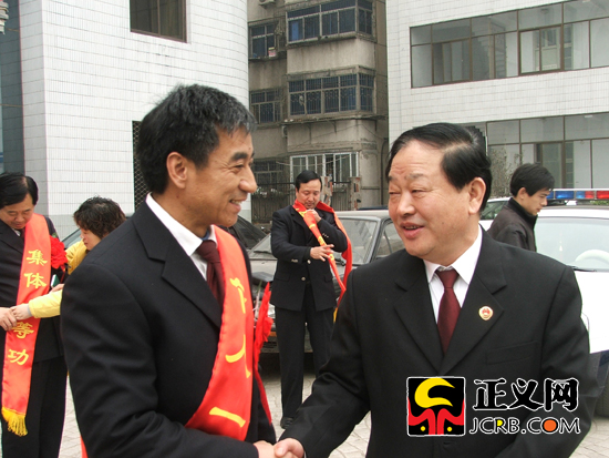 圖為葉樹群榮立一等功時,河南省檢察院原檢察長王尚宇與其親切交談的舊照。