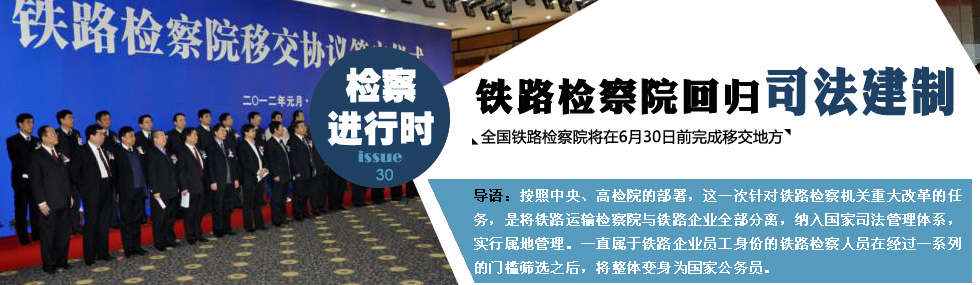 醞釀了多年的鐵路司法機關管理體制改革進入2012年有了重大成果。1月12日,山西省檢察院和太原鐵路局率先在全國第一個簽訂全面移交協(xié)議。據(jù)悉,全國多個鐵路運輸檢察院屬地移交也將在今年內(nèi)陸續(xù)完成。