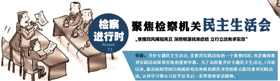10月8日上午,江蘇省檢察院召開了專題民主生活會。省委第三督導(dǎo)組全程參加了省檢察院黨組專題民主生活會,督導(dǎo)組組長陳家寶說,班子成員的自我批評開門見山、揭短亮丑,“出了汗”“紅了臉”;相互批評突出重點、直截了當、真誠幫助,沒有相互放“禮炮”“啞炮”“空炮”,達到了“洗澡治病”的效果;接受批評的態(tài)度謙遜,整改措施明確到位。班子成員每個人的發(fā)言都有具體的事例,克服了具體事例空缺、整改措施空乏、工作職能空掛和舍不得不講成績的現(xiàn)象,達到了“像、準、深、誠、樸”五個標準。[詳細]