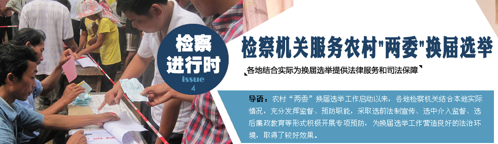 近年來,隨著農(nóng)村社會經(jīng)濟(jì)、政治生活的發(fā)展變化,基層民主觀念逐漸植根于農(nóng)民心中,民主決策受到越來越多的重視,村民委員會換屆選舉與村黨支部換屆選舉成了農(nóng)村民主政治生活的頭等大事。各地檢察機(jī)關(guān)立足檢察職能,采取有效防范措施,防止干擾、危害和破壞換屆選舉職務(wù)犯罪的發(fā)生,為確保農(nóng)村“兩委”換屆工作健康順利進(jìn)行提供了良好的法律服務(wù)和司法保障。