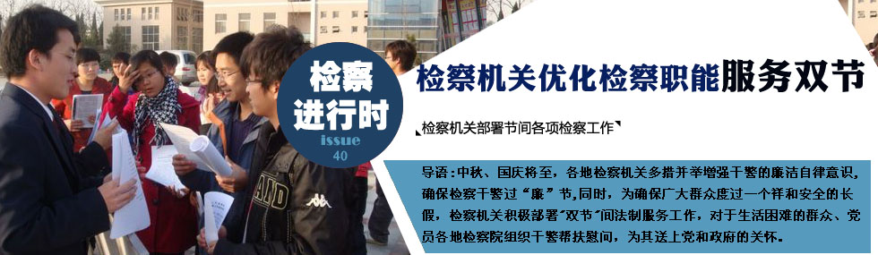 各地檢察機(jī)關(guān)以"雙節(jié)"為契機(jī)加強(qiáng)對(duì)領(lǐng)導(dǎo)干部的反腐倡廉教育,有效預(yù)防節(jié)日期間腐敗問(wèn)題頻發(fā)現(xiàn)象,深入推進(jìn)反腐倡廉建設(shè)。