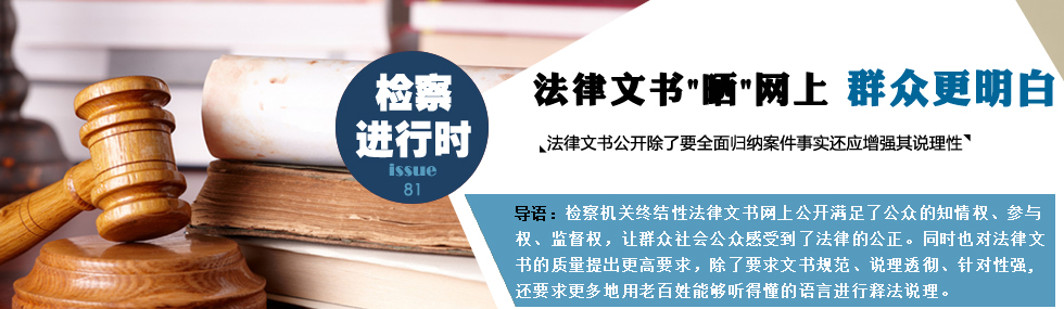 對檢察機(jī)關(guān)來說,法律文書上網(wǎng)對檢察工作提出了更高要求。文書上網(wǎng)后,除了要求文書規(guī)范、說理透徹、針對性強(qiáng),還要求更多地用老百姓能夠聽得懂的語言進(jìn)行釋法說理,不能用簡單的程式化語言或者晦澀的法言法語。因此,廣東省檢察機(jī)關(guān)要求不斷增強(qiáng)法律文書的規(guī)范性和說理性。 [詳細(xì)]