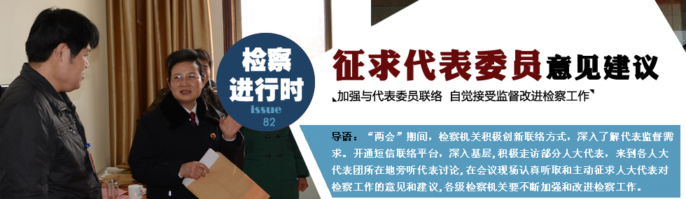 2月11日,河南省三門峽市檢察院派出21個小組42名干警深入三門峽市兩會現(xiàn)場,廣泛征求該市人大代表、政協(xié)委員對三門峽市檢察院工作報告的意見建議。人大代表、政協(xié)委員對檢察機關(guān)誠懇接受監(jiān)督,不斷改進(jìn)作風(fēng)的作法給予高度評價。 |
