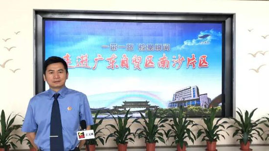 圖為廣州市南沙區(qū)檢察院檢察長(zhǎng)趙劍接受采訪。