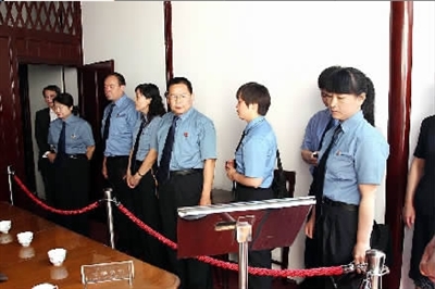 正在上海作巡回報(bào)告的全國檢察機(jī)關(guān)踐行政法干警核心價(jià)值觀英模事跡報(bào)告團(tuán)的檢察英模,5月17日來到中國共產(chǎn)黨第一次全國代表大會(huì)會(huì)址參觀,接受堅(jiān)定理想信念教育。