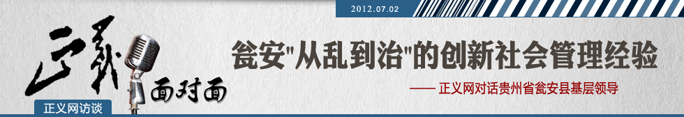 ·縣委書記:創(chuàng)新社會管理,甕安“浴火重生” “甕安事件”暴露出我縣部分干部工作作風(fēng)不實(shí)、工作效率不高、行政作為不夠和干群關(guān)系緊張等問題。為此,我們痛下決心,站在全心全意為最廣大人民群眾謀利益的立場上,主要從六個方面入手,修復(fù)社會創(chuàng)傷,創(chuàng)新社會管理,實(shí)現(xiàn)了甕安從大亂到大治、從民心失落到民心重聚的重大轉(zhuǎn)變。 |
