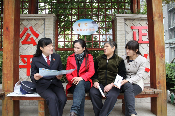 近日,江蘇省徐州市泉山區(qū)的20多個小區(qū)同時出現(xiàn)了"法治長廊"和"法治角",每天引來大量居民駐足觀看。這是泉山區(qū)檢察院聯(lián)合轄區(qū)辦事處在十八大前夕把普法宣傳與廣大群眾生活有機融合的一項舉措。圖為10月28日,泉山區(qū)檢察院的干警在某小區(qū)"法治角"向群眾宣傳法律知識!
