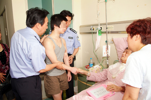 今年父親節(jié)前的一天(14日)上午,在上海浦東長(zhǎng)海醫(yī)院的病房里,因販賣(mài)毒品被關(guān)押犯罪嫌疑人曉偉(化名)跪在父親的床榻面前,含著眼淚重重地磕了三個(gè)響頭,他知道這很可能是他最后一次見(jiàn)到慈祥的父親,而這“最后一次”又是多么的來(lái)之不易!