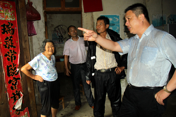8月7日晚,臺風“?毕虬不找u來,宣城市、郎溪縣等地檢察機關積極參與抗擊臺風、扶困救災工作。圖為8月8日,郎溪縣檢察院檢察官深入村民家中了解防臺準備情況。
