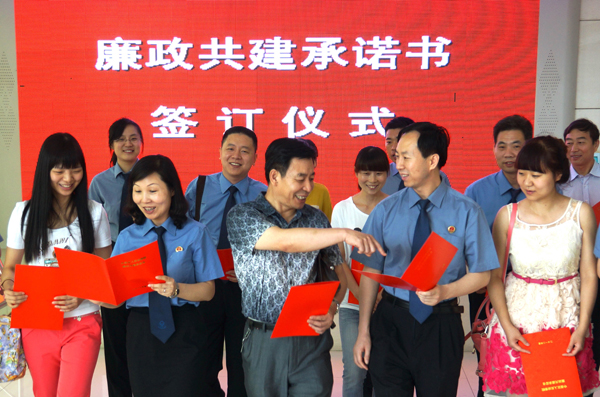 河南省鄭州市中原區(qū)檢察院采取多種形式開展廉潔教育,并將宣傳教育向干警家屬延伸,確保干警八小時外廉潔。該院近日舉行廉政共建承諾書簽字儀式,干警和家屬們都說,簽訂廉政承諾書是。