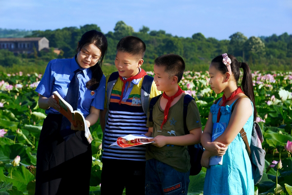 2010年9月,江西省豐城市人民檢察院和市教育局兩部門聯(lián)手共同開展“法律進校園”活動;顒影ㄟx聘若干名優(yōu)秀檢察官為“法制副校長”,定期到學校積極開展法制宣傳教育工作。圖為2012年6月27日,該院檢察官“法制副校長”來到本市曲江小學,在校園附近的蓮池邊開展青少年法制教育和廉潔教育。