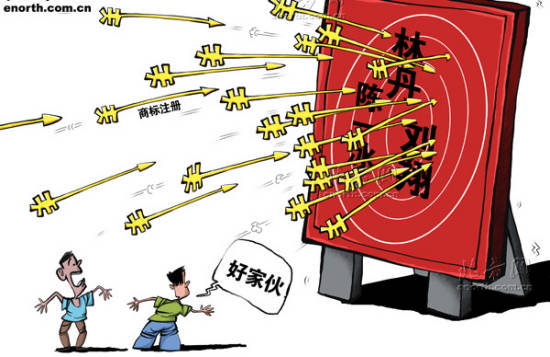 "林丹"牌飼料、"葉詩文"牌泳衣等商標注冊信息不斷出現(xiàn)在媒體的報道中。26日央視《每周質(zhì)量報告》報道稱,商標市場近年涌現(xiàn)出了新群體——商標職業(yè)搶注者。
