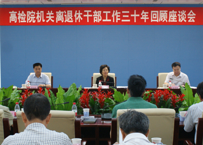 最高人民檢察院今天召開機關(guān)離退休干部工作三十年回顧座談會。高檢院常務(wù)副檢察長胡澤君出席并強調(diào),要認(rèn)真研究老干部工作面臨的新形勢新任務(wù)新挑戰(zhàn),進一步把加強老同志的思想政治工作放在首位,不斷提高老干部工作科學(xué)化水平。胡澤君指出,老干部是黨和國家的寶貴財富和重要執(zhí)政資源,干部離退休制度關(guān)系到黨和國家興旺發(fā)達和事業(yè)興衰成敗。