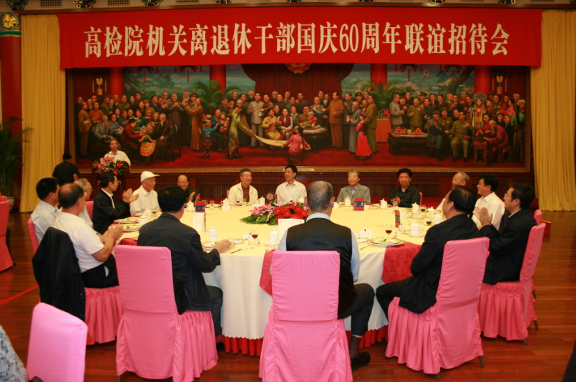 每逢重大慶典,高檢院機(jī)關(guān)均組織老同志參加慶祝活動(dòng)。圖為2009年召開(kāi)離退休干部國(guó)慶60周年聯(lián)誼招待會(huì),曹建明檢察長(zhǎng)等院領(lǐng)導(dǎo)出席招待會(huì)。