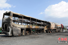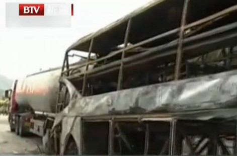 | 8月26號發(fā)生在包茂高速陜西延安安塞段的雙層臥鋪客車跟裝載甲醇的罐車追尾起火事故,目前確認36人遇難,3人受傷。國務(wù)院“8·26”特別重大道路交通事故調(diào)查組今天在延安召開第一次全體會議。公安部交管局局長楊鈞表示,初步調(diào)查顯示這是一起兩車駕駛員違法導(dǎo)致的事故。 |