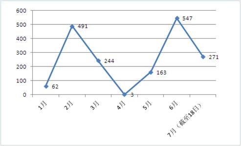 2012年媒體報道月變化趨勢圖(單位:篇數來源:正義網輿情監(jiān)測系統)