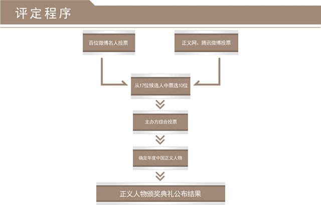 "年度中國正義人物"評選活動由正義網(wǎng)發(fā)起,重點(diǎn)新聞網(wǎng)站和主要商業(yè)網(wǎng)站共同參與,活動旨在弘揚(yáng)社會正氣,表彰道德楷模。