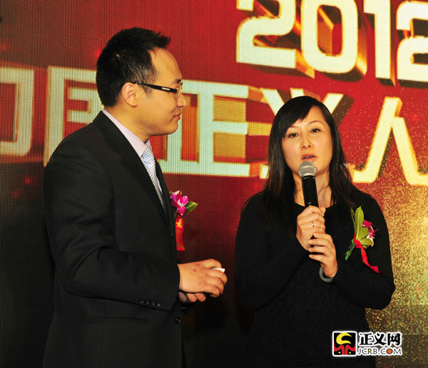 主持人采訪2012年度正義人物“最美司機”吳斌的妻子。閆昭 攝