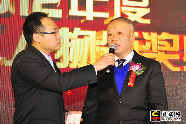 2012年度中國正義人物項(xiàng)全雄接受主持人采訪。閆昭 攝