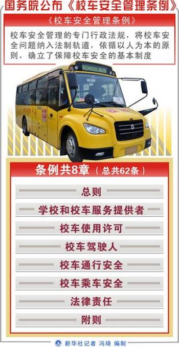 由于“奪命校車”事故頻發(fā),2011年11月,溫家寶總理在第五次全國婦女兒童工作會(huì)議上指出,國務(wù)院已經(jīng)責(zé)成有關(guān)部門迅速制訂校車安全條例。2012年3月, 國務(wù)院總理溫家寶主持召開國務(wù)院常務(wù)會(huì)議,審議并原則通過《校車安全管理?xiàng)l例(草案)》,要求校車通行優(yōu)先;4月份,《校車安全管理?xiàng)l例》發(fā)布,高中生上下學(xué)不納入校車服務(wù)范圍。