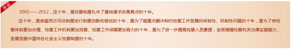 | 案件實行集中管理 促進管理科學(xué)化 |  | 2011年,最高檢成立案件管理辦公室,對案件實行集中管理,胡澤君副檢察長強調(diào)這是檢察機關(guān)貫徹落實科學(xué)發(fā)展觀,強化內(nèi)部監(jiān)督制約,提高檢察機關(guān)管理科學(xué)化水平,進一步規(guī)范執(zhí)法行為,提高辦案質(zhì)量的戰(zhàn)略舉措![詳情] |
