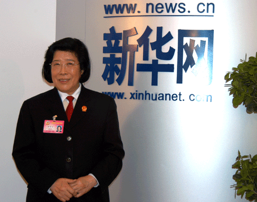 2006年3月尚秀云做客新華網(wǎng)談青少年道德教育 (圖片來源:新華網(wǎng))