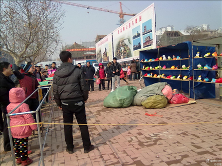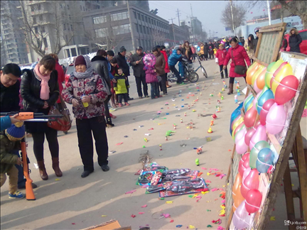 大年初一逛大街,都來(lái)投沙包掙玩具。