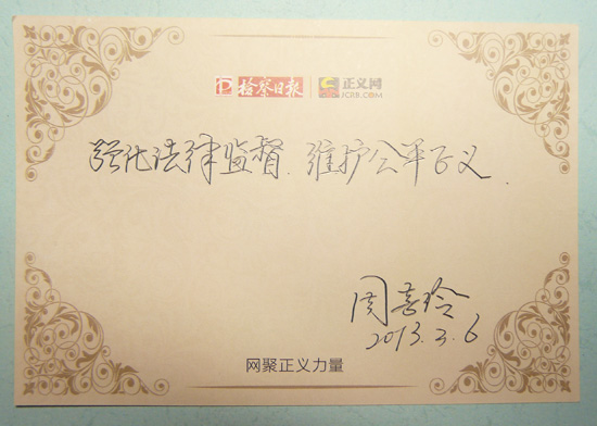 全國人大代表、陜西省鳳縣人民檢察院副檢察長、黨組成員周喜玲:強(qiáng)化法律監(jiān)督 維護(hù)公平正義。