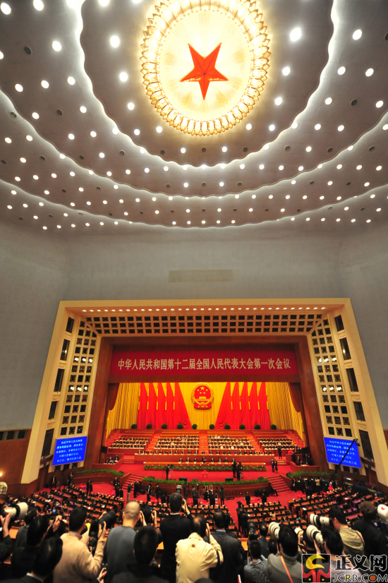 3月16日下午,十二屆全國人民代表大會第一次會議在人民大會堂舉行第六次全體會議,決定國務(wù)院副總理、國務(wù)委員、各部部長、各委員會主任、中國人民銀行行長、審計長、秘書長的人選;表決第十二屆全國人民代表大會各專門委員會主任委員、副主任委員、委員名單草案。正義網(wǎng)記者程丁 攝