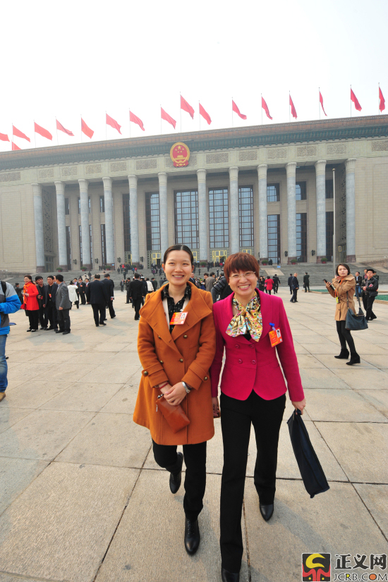 兩位代表在大會(huì)堂前合影。正義網(wǎng)記者記者程丁 攝