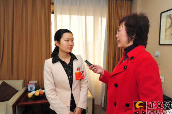 全國(guó)人大表易鳳嬌接受本報(bào)記者采訪。正義網(wǎng)記者程丁 攝