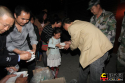 4月20日晚9時,四川邛崍市檢察院干警正向緊鄰 “4.20”蘆山7.0級地震震中的該市高何鎮(zhèn)靖口村的受災(zāi)群眾和參與搶險救災(zāi)的干部、民兵、志愿者分發(fā)送去的盒飯。王弈 攝