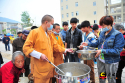 蘆山縣佛圖寺的僧侶們每天早上8點(diǎn)到晚上8點(diǎn),不間斷的在縣人們醫(yī)院門前免費(fèi)為路人提供熱粥。正義網(wǎng)記者程丁/攝