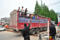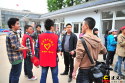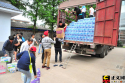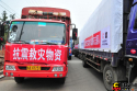 在雅安市老干部活動(dòng)中心院內(nèi),由當(dāng)?shù)刂驹刚咦园l(fā)組織的救援隊(duì)正往貨車上裝救援物資,準(zhǔn)備送往蘆山的中、小學(xué)。本網(wǎng)記者程丁攝
