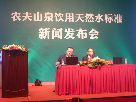 人民網(wǎng)北京5月6日電(姜方)今天下午,農(nóng)夫山泉在北京就產(chǎn)品標準問題召開新聞發(fā)布會時,與《京華時報》記者就標準問題進行了激烈爭執(zhí),現(xiàn)場發(fā)言屢被打斷。不僅于此,農(nóng)夫山泉董事長鐘睒睒在發(fā)布會指責北京“環(huán)境”問題,表示將放棄北京10萬用戶市場。