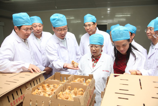 6月30日,原國務(wù)院副總理吳儀與原農(nóng)業(yè)部部長劉江到首農(nóng)集團視察,老領(lǐng)導(dǎo)們饒有興致地參觀了三元食品工業(yè)園、華都峪口禽業(yè)孵化場、種雞場,對集團公司在食品安全控制、農(nóng)業(yè)科技等方面的工作表示肯定。