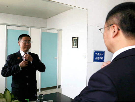 公訴人付建中精神抖擻地與同伴一起出發(fā)了。劉明 攝