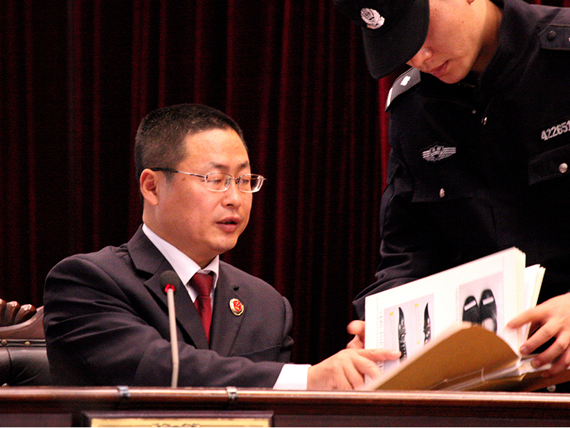 9點30分,法院準時開庭。持續(xù)兩小時的庭審中,被告人童俊中對自己的瘋狂行為毫無懺悔之意,多次辯稱殺人并非出于“故意”。公訴人付建中宣讀起訴書,反駁被告與律師的辯護意見,發(fā)表公訴詞,聲音洪亮、思路清晰,邏輯縝密,觀點明確,當(dāng)庭建議對被告人童俊中判處死刑。劉明 攝